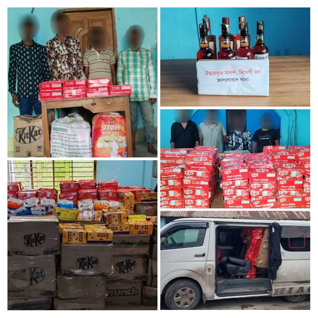 জালালাবাদ থানা পুলিশের পৃথক অভিযানে প্রায় ১৩লক্ষ ৩০হাজার টাকার ভারতীয় চকলেট, মদ ও গাড়ি জব্দ – গ্রেপ্তার ৮