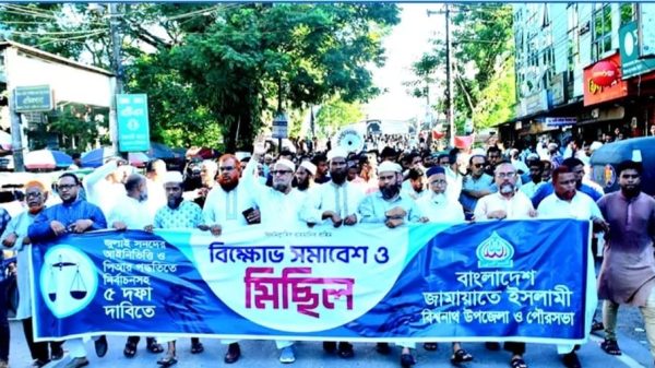 মোঃ জাহান মিয়া, বিশ্বনাথ প্রতিনিধি :: বাংলাদেশ জামায়াতে ইসলামীর কেন্দ্রীয় ঘোষিত ৫ দফা দাবিতে বিশ্বনাথ উপজেলা ও পৌর জামাতের বিক্ষোভ মিছিল অনুষ্টিত হয়। সিলেটের বিশ্বনাথ উপজেলায় বাংলাদেশ জামাতে ইসলামির ...বিস্তারিত পড়ুন