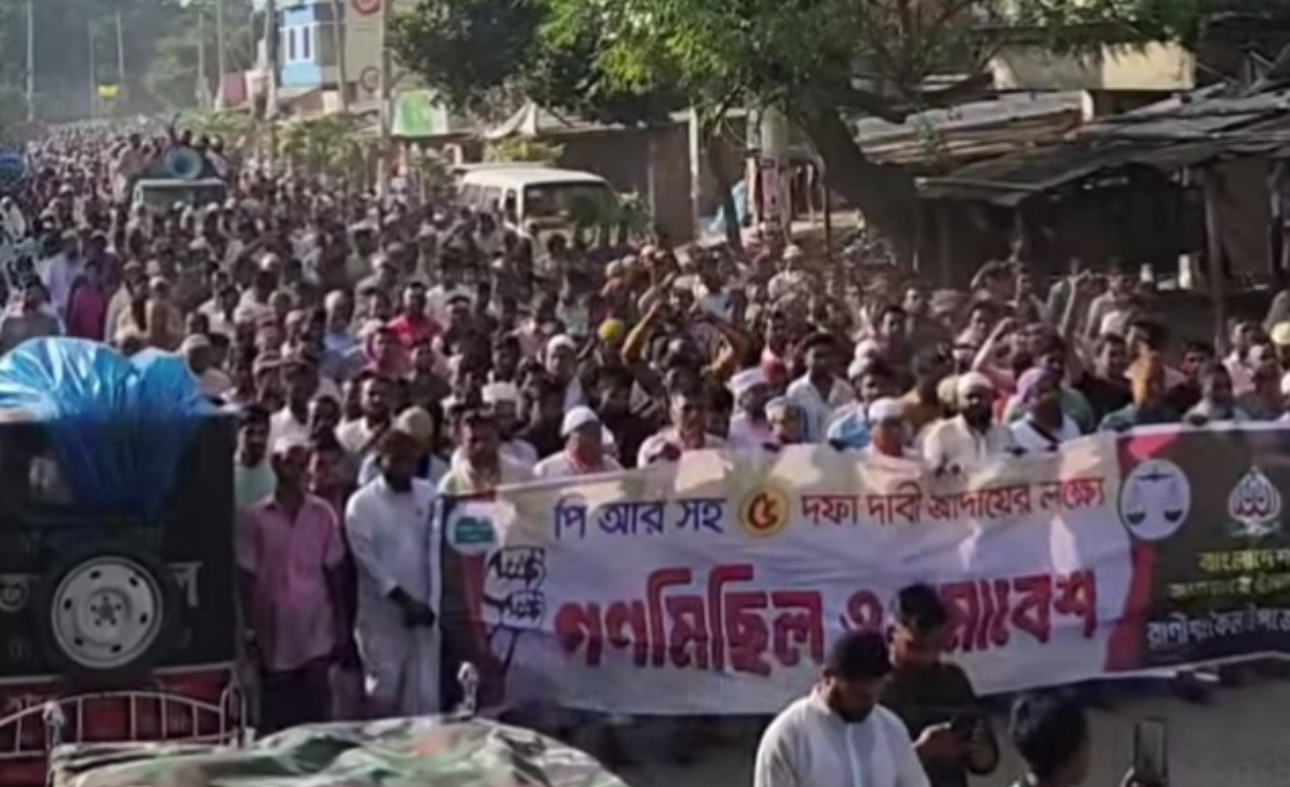 পরে একই স্থানে প্রতিবাদ সমাবেশ অনুষ্ঠিত হয়। এসময় বক্তারা বলেন, দেশে পিআর (প্রোপোরশনাল রিপ্রেজেন্টেশন) পদ্ধতি ছাড়া কোনো নির্বাচন গ্রহণযোগ্য হবে না। তারা অভিযোগ করেন, পিআর ছাড়া নির্বাচন মানে দিনের ভোট রাতে করার প্রস্তুতি, যা জনগণ আর কখনও মেনে নেবে না।