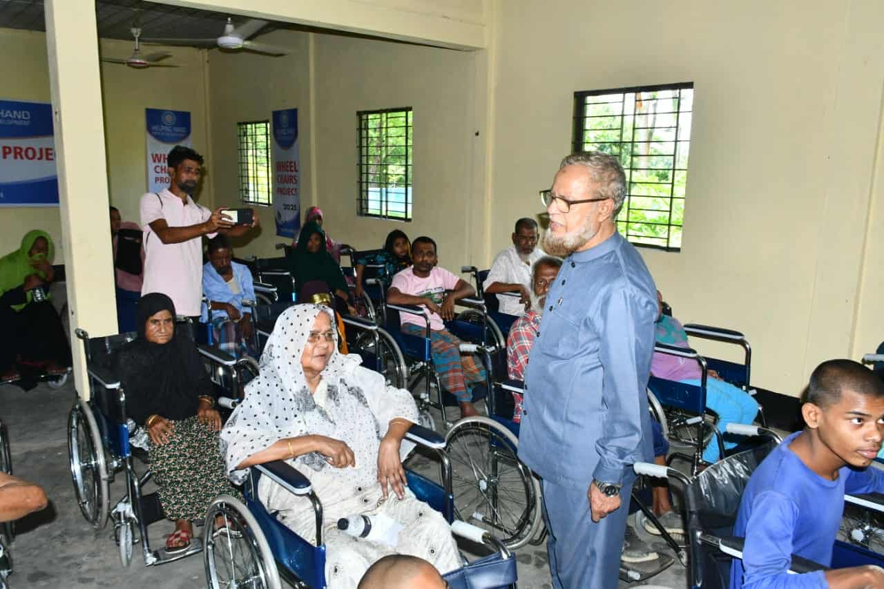 সিলেটের বিশ্বনাথ পৌরশহরে (বিশ্বনাথ- -জগন্নাথপুর) বাইপাস সংলগ্ন দারুল উম্মাহ আইডিয়াল মাদ্রাসায় অবহেলিত শারীরিক প্রতিবন্ধীদের মাঝে হুইল চেয়ার বিতরণ করা হয়। শনিবার (২৭শে সেপ্টেম্বর) সকালে বিশ্বনাথ উপজেলা ও পৌর জামাতের উদ্যোগে অসহায় শারীরিক প্রতিবন্ধীদের মাঝে ৩০ জনকে ৩০টি হুইল চেয়ার প্রদান করা হয় । প্রধান অতিথি হিসেবে উপস্থিত ছিলেন, সিলেট-২ (বিশ্বনাথ-ওসমানীনগর) নির্বাচনী আসনে জামায়াতের সম্ভাব্য সংসদ সদস্য পদপ্রার্থী বিশিষ্ট শিক্ষাবিদ সমাজসেবক অধ্যাপক মোঃ আব্দুল হান্নান। প্রধান অতিথির বক্তব্যে বলেছেন, মহান আল্লাহ তায়ালার কাছে পৃথিবীর স্রেষ্ট জীব মানুষ। সেই মানুষ বিভিন্ন কারণে সৃষ্টির সময় থেকে ও পরবর্তীতে প্রতিবন্ধী হয়ে পড়ে। পৃথিবীর অনেক দেশের সরকার তাদের জন্য বিভিন্ন নাগরিক সূবিধা দিয়ে থাকে। আমাদের দেশে যেহেতু সেই সুযোগ নেই, তাই আমাদের সবাইকে প্রতিবন্ধীদের পাশে দাঁড়ানো উচিত । তিনি গতকাল শনিবার বিকেলে বিশ্বনাথে আমেরিকান চ্যারিটি সংগঠন হেল্পিং হ্যান্ড এর পক্ষ থেকে ৩০ জন প্রতিবন্ধীদের মধ্যে হুইল চেয়ার বিতরণী অনুষ্ঠানে একথা বলেন।