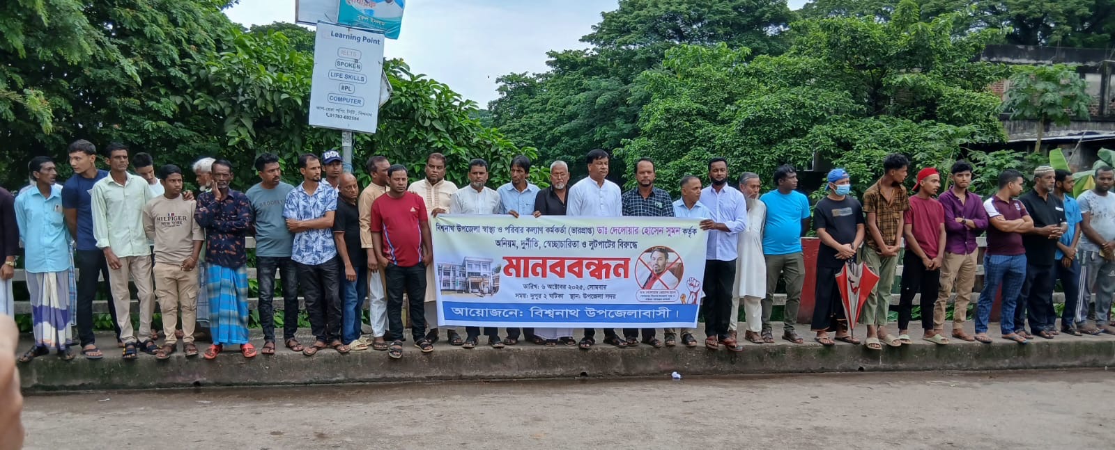 বিশ্বনাথ উপজেলা স্বাস্থ্য ও পরিবার কর্মকর্তার লুটপাট-দূর্নীতির বিরুদ্ধে মানববন্ধন।