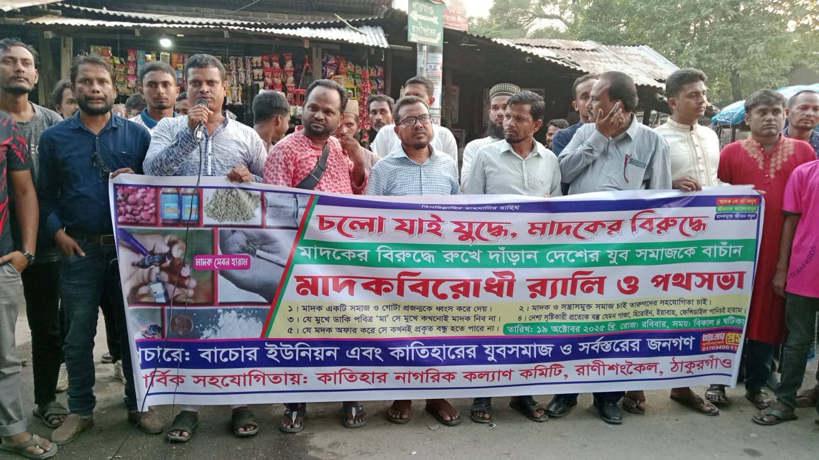 রাণীশংকৈলে কাতিহার হাটে মাদকের বিরুদ্ধে বিক্ষোভ মিছিল ও পথসভা অনুষ্ঠিত
