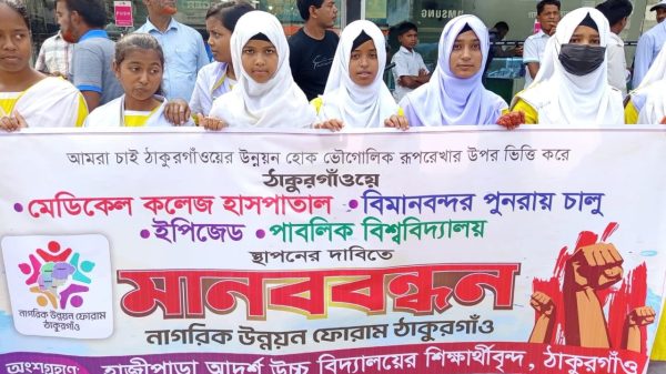হাসিনুজ্জামান মিন্টু, ঠাকুরগাঁও প্রতিনিধি:: ঠাকুরগাঁওয়ে মেডিকেল কলেজ হাসপাতাল ও বিমানবন্দর পুনরায় চালু, ইপিজেড এবং একটি পাবলিক বিশ্ববিদ্যালয় প্রতিষ্ঠার দাবিতে বিশাল মানববন্ধন অনুষ্ঠিত হয়েছে। মঙ্গলবার দুপুরে শহরের গুরুত্বপূর্ণ সড়কে এই মানববন্ধনের ...বিস্তারিত পড়ুন