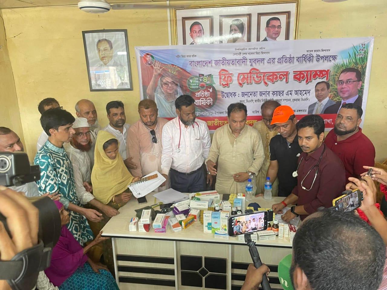 যুবদলের ৪৭তম প্রতিষ্ঠা বার্ষিকী উপলক্ষে জগন্নাথপুর উপজেলা যুবদল ও পৌর যুবদলের আয়োজনে জগন্নাথপুর উপজেলা বিএনপি কার্যালয়ে জগন্নাথপুর উপজেলা বিএনপির সাবেক স্বাস্থ্য বিষয়ক সম্পাদক, শাহজালাল ডায়গনস্টিক সেন্টারের সত্তাধিকারি ডাঃ সৈয়দ মারজান, জগন্নাথপুর হাসপাতালেরর ডাঃ শহিদ্দুল্লাহ ও ডাঃ মান্না দের তত্ত্বাবধানে দুপুর ১ঘটিকা হইতে বিকাল ৪ঘটিকা পর্যন্ত ফ্রি মেডিকেল ক্যাম্প অনুষ্ঠিত হয়েছে। ফ্রি মেডিকেল ক্যাম্পে প্রায় দেড় শতাদিক অসহায় মা ও শিশুকে চিকিৎসা সেবা দেওয়া হয়েছে।