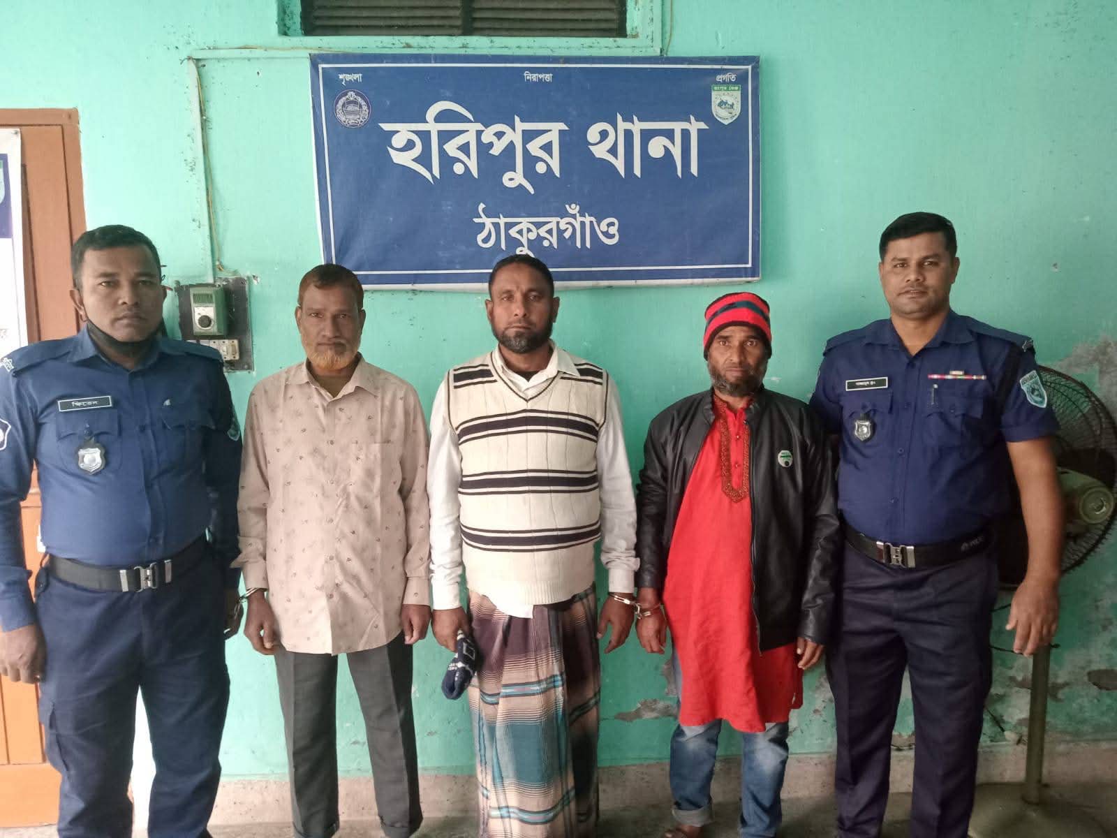 গ্রেফতারকৃতদের মধ্যে হরিপুরের ২নং আমগাঁও ইউনিয়নের বেলুয়া গ্রামের দুজন এবং ৬নং ভাতুরিয়া ইউনিয়নের একজন রয়েছেন।
