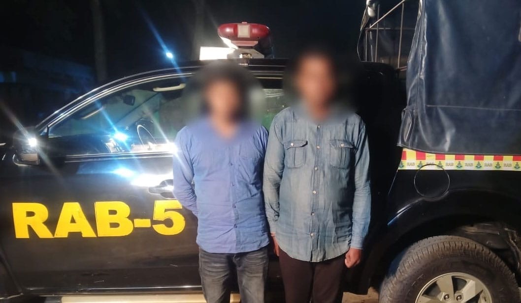 র্যাব-৫, সিপিএসসি, রাজশাহীর একটি আভিযানিক দল গোপন সংবাদের ভিত্তিতে সোমবার (১০ নভেম্বর ২০২৫) বিকেল ৫টার দিকে তানোর থানাধীন হাটদহ এলাকায় অভিযান পরিচালনা করে। অভিযানে মাদক ব্যবসায়ী রবিউল ইসলাম ও রুবেল আলীকে গ্রেপ্তার করা হয়েছে। গ্রেপ্তার উভয়েই তানোর থানার বাসিন্দা।