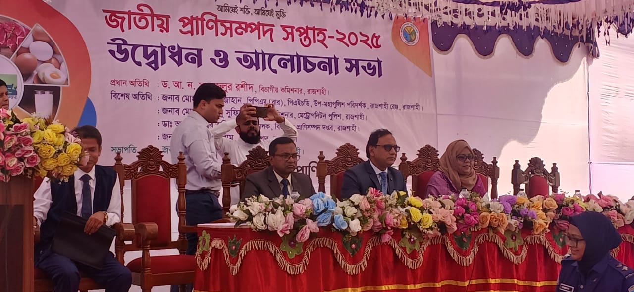 রাজশাহী শহরের চিড়িয়াখানার মোড়ে শুরু হয়েছে, সপ্তাহ ব্যপী প্রাণিসম্পদ মেলা । আজ ২৬/১১/২৫ ইং তারিখ সকাল ১০ টার সময় এই মেলার উদ্বোধন করেন, মাননীয় প্রধান অতিথি, জনাব ড. বজলুর রশীদ ( রাজশাহী বিভাগীয় কমিশনার) । ব্যপক উৎসাহ, উদ্দীপনার মধ্যে দিয়ে এই মেলার উদ্বোধন করা হয় ।বিশেষ অতিথি হিসেবে উপস্থিত ছিলেন, মাননীয় জেলা প্রশাসক , আফিয়া ইসলাম। জনাব, আবু সুফিয়ান, পুলিশ কমিশনার, রাজশাহী । ফারজানা ইসলাম পুলিশ সুপার, রাজশাহী ।