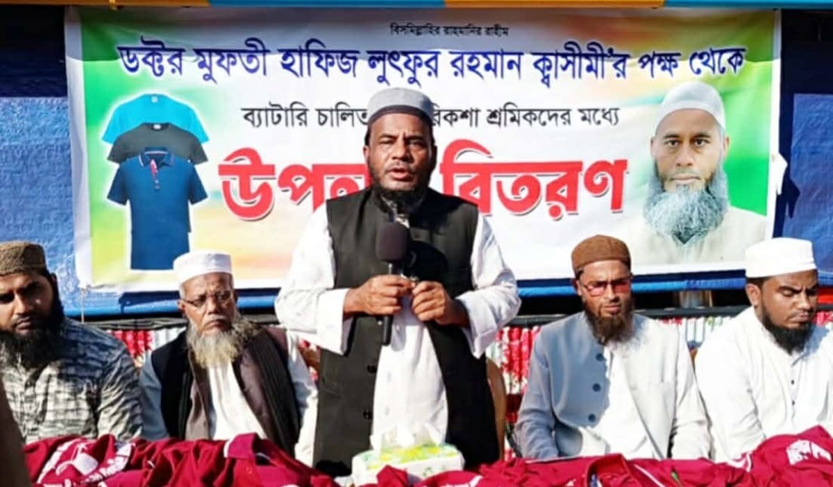 সিলেট-২ (বিশ্বনাথ-ওসমানীনগর) বাংলাদেশ খেলাফত মজলিস মনোনিত সম্ভাব্য সংসদ সদস্য পদপ্রার্থী ড. মুফতি হাফেজ লুৎফুর রহমান ক্বাসিমীর পক্ষ থেকে সিলেটের বিশ্বনাথে ব্যাটারিচালিত অটোরিক্সা শ্রমিকদের মাঝে উপহার (রান্না করা খাবার ও টি-শার্ট) বিতরণ করা হয়েছে। বিশ্বনাথ পৌর শহরের কারিকোনা গ্রামস্থ একটি রেস্টুরেন্ট প্রাঙ্গণে এলাকার প্রায় ২ শতাধিক অটোরিক্সা শ্রমিকের মধ্যে এই উপহার বিতরণ করা হয়।