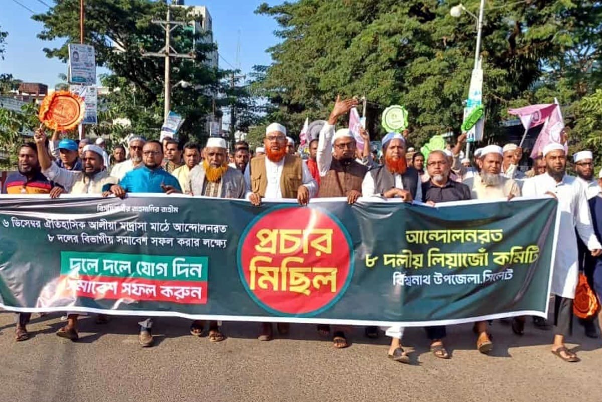 আগামী ৬ ডিসেম্বর সিলেট সরকারি আলীয়া মাদ্রাসা মাঠে আন্দোলতরত ৮ দলের বিভাগীয় সম্মেলনকে সফলের লক্ষ্যে সিলেটের বিশ্বনাথে প্রচার মিছিল ও পথসভা অনুষ্ঠিত হয়েছে।