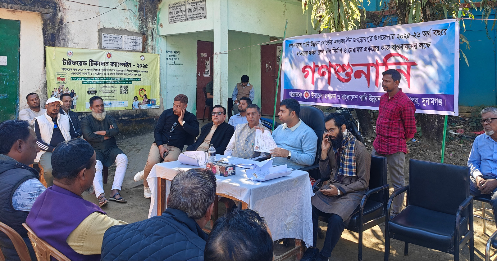 সুনামগঞ্জের জগন্নাথপুর উপজেলায় ২০২৫-২৬ অর্থবছরের হাওরের ফসল রক্ষা বাঁধ নির্মাণ ও মেরামত প্রকল্প বাস্তবায়ন উপলক্ষে রানীগঞ্জ ইউনিয়ন, পাইলগাঁও ইউনিয়ন, আশারকান্দি ইউনিয়নের দাখিল করা কমিটি সদস্য ও কৃষক নিয়ে গণশুনানি অনুষ্ঠিত হয়েছে।
