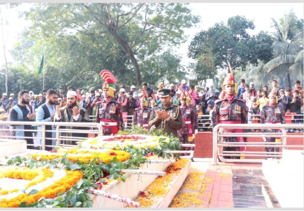 মহান বিজয় দিবস উপলক্ষে যথাযোগ্য মর্যাদায় বীরশ্রেষ্ঠ শহীদ ল্যান্স নায়েক নূর মোহাম্মদ শেখের সমাধিতে পুষ্পস্তবক অর্পন করলো ৪৯ বিজিবি।