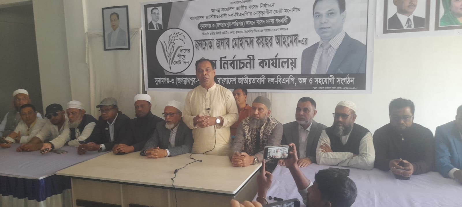 আসন্ন ত্রয়োদশ জাতীয় সংসদ নির্বাচনকে সামনে রেখে সুনামগঞ্জ-৩ (জগন্নাথপুর–শান্তিগঞ্জ) আসনে বিএনপির মনোনীত ধানের শীষ প্রতীকের সংসদ সদস্য প্রার্থী জনাব কয়ছর আহমেদের জগন্নাথপুর উপজেলা প্রধান নির্বাচনী কার্যালয় উদ্বোধন করা হয়েছে।