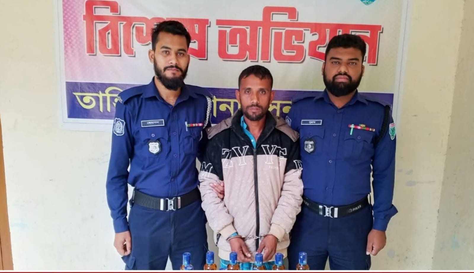 অভিযানকালে ১১ বোতল Officer’s Choice Blue Pure Grain Whisky (১৮০ মিলি), যা ভারতীয় তৈরি, উদ্ধার করা হয়। উদ্ধারকৃত মদের আনুমানিক বাজারমূল্য ৬,৬০০ (ছয় হাজার ছয়শত) টাকা।