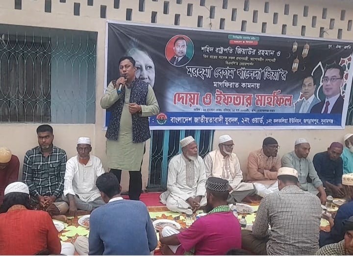 শহীদ প্রেসিডেন্ট জিয়াউর রহমান ও সাবেক প্রধানমন্ত্রী ও বিএনপি চেয়ারপারসন মরহুমা বেগম খালেদা জিয়ার রুহের মাগফিরাত এবং দেশ ও জাতির কল্যাণ কামনায় দোয়া ও ইফতার মাহফিলের আয়োজন করেছে সুনামগঞ্জের জগন্নাথপুর উপজেলার কলকলিয়া ইউনিয়নের ২ নং ওয়ার্ড যুবদল।