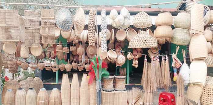 সরজমিন দেখা গেছে, এ বাজারে বাঁশ-বেতের তৈরি টুকরি (ঝুড়ি), খলই (মাছ রাখার পাত্র), দুছইন, হুপা (মাছ ধরার যন্ত্র), ঝাঁকা, কুলা, চালুন, বেতের মাথাল, সেঁউতি, লাঙ্গল, জোয়াল এবং বিভিন্ন ধরণের বেতের পাটি (শীতলপাটি-কেয়াপাতার পাটি) ও অন্যান্য আসবাবপত্রের পসরা সাজিয়ে বসেছেন বিক্রেতারা।