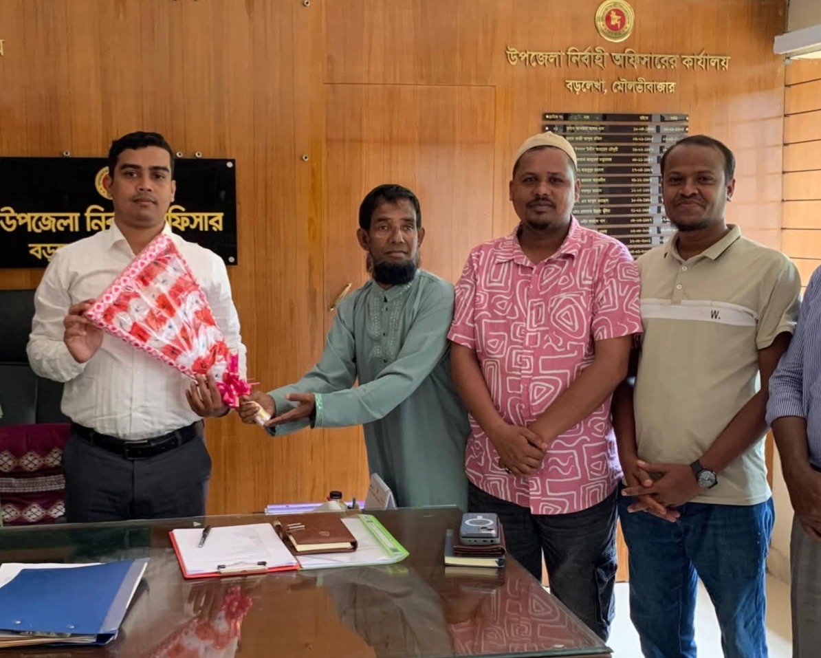 মৌলভীবাজার জেলার বড়লেখা উপজেলা প্রশাসনের নতুন নির্বাহী কর্মকর্তা ইউএনও’র সাথে সৌজন্য সাক্ষাৎ করেছেন বাংলাদেশ জাতীয়তাবাদী সামাজিক সাংস্কৃতিক সংস্হা (জাসাস) বড়লেখা উপজেলা শাখার নেতাকর্মীরা।