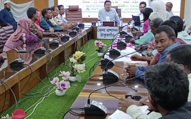 ঠাকুরগাঁওয়ে ভূমিহীন মানুষের অধিকার নিশ্চিত করার লক্ষ্যে জেলা প্রশাসনের সঙ্গে জনসংগঠনের এক গুরুত্বপূর্ণ মতবিনিময় সভা অনুষ্ঠিত হয়েছে। “যাদের কিছু নেই, যাদের কেউ নেই—তাদের পাশে আমরা” এই প্রতিপাদ্যকে সামনে রেখে আয়োজিত সভায় ভূমিহীনদের ভূমির অধিকার ও মানবাধিকার প্রতিষ্ঠার বিষয়টি গুরুত্বের সঙ্গে তুলে ধরা হয়।