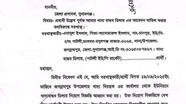 মোঃ মুকিম উদ্দিন জগন্নাথপুর প্রতিনিধিঃঃ সুনামগঞ্জ জেলার জগন্নাথপুর উপজেলার পাটলী ইউনিয়নের পাটলী ইউনিয়ন মার্কেট পয়েন্ট এর খাদ্যবান্ধব ডিলার নিয়োগে অনিয়মের অভিযোগ উঠেছে। এব্যাপারে ১৯ অক্টোবর এনামুল ইসলাম নামের এক প্রার্থী